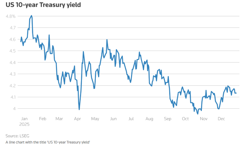 此外,一些投资者表示,来自美国总统唐纳德.特朗普税收与支出政策的财政刺激举措——预计将推动2026年美国经济显著增长,但是可能将阻止长期限美国国债收益率像今年那样的持续下行轨迹。